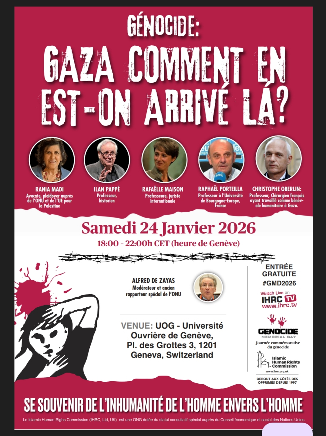 • A Genève, samedi 14 octobre 2023, à 17h à la Place Neuve